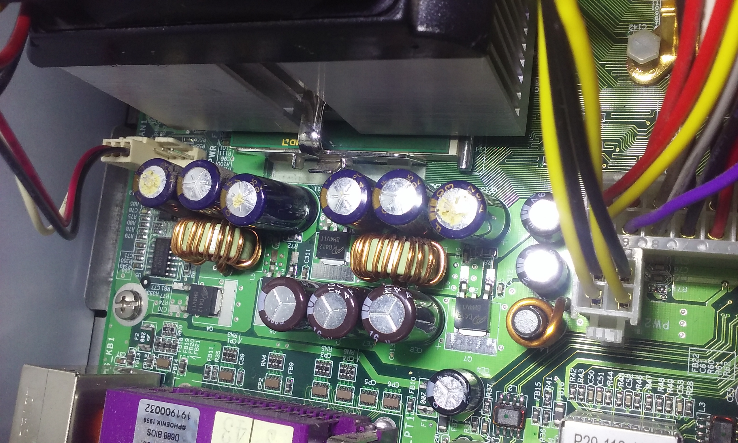 Minimálně polovina těch modrých (blíž k procesoru) "válečků" je nafouklých, pokud dobře vidím, a ani osazení chladiče na procesoru ve mně nebudí důvěru. Je to mrtvola nestabilní, to nemá cenu oživovat.