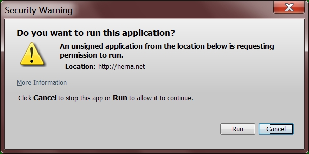 Po spuštění prohlížeče ti pak vyskočí okno (viz. příloha), které musíš odsouhlasit (Run).