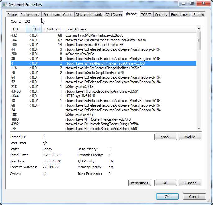 přerušení je v podstatě výsledek- musí to být tichá klidná voda. průser zjistíš v položce system, vlastnosti, vlákna a v sys logu.