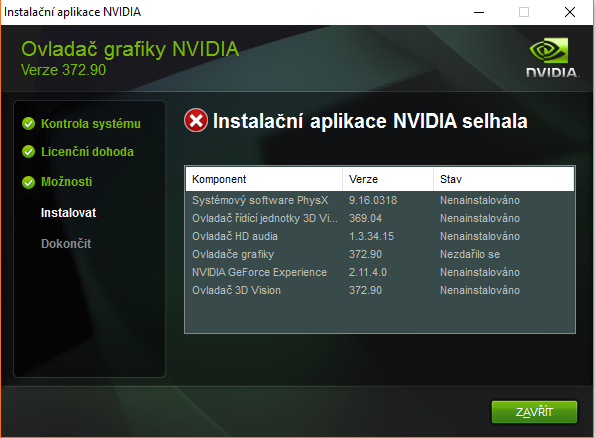 driveru na mém počítači, restartoval jsem ho a i po tomhle mém zásahu to hlásá že se instalace nezdařila a abych Vám to blíže specifikoval, píše to toto: