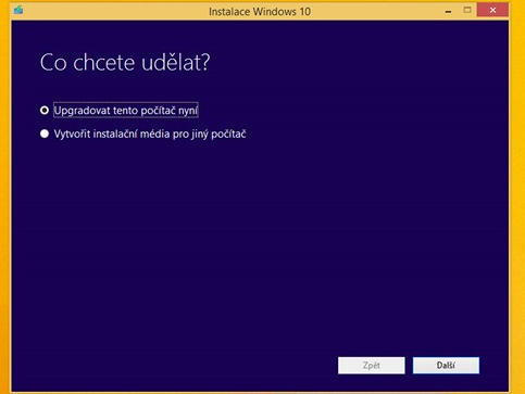 * Po stahnuti, spustis, akceptujes licenci a das instalovat az se te instalacni program zepta, jetli chces proves instalaci hned - "UPgradovat tento pocitac nyni"..