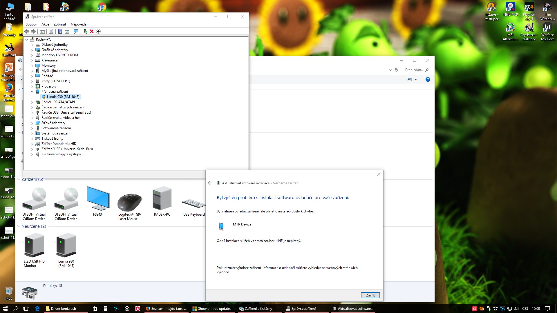 Ikdyž mě to píše,že ovladač byl nalezen,ale při jeho instalaci nastala chyba MTP device.