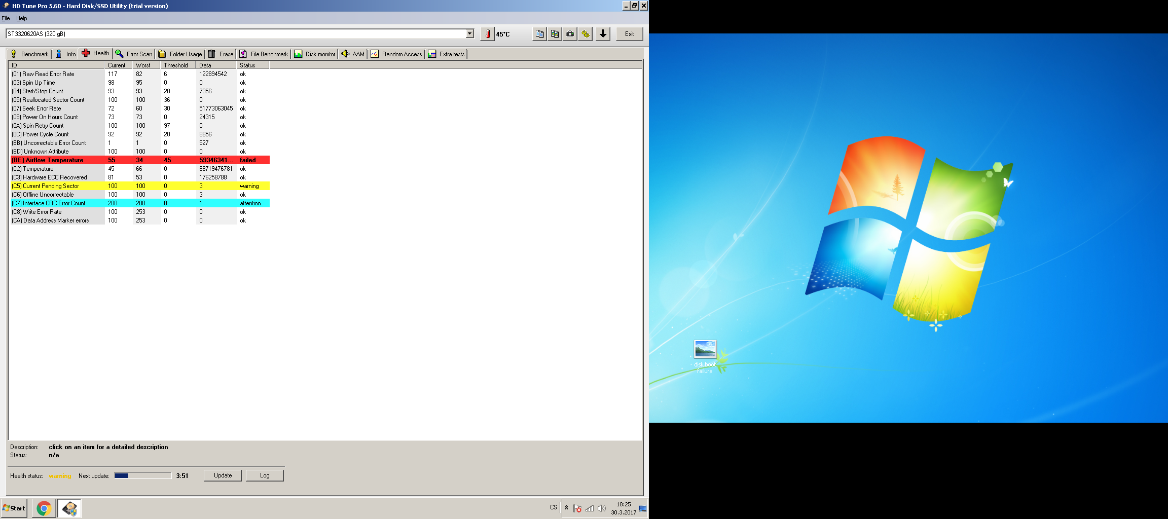 disk failure naskočilo až po restartu, to jsem sem ani nedávál protože nic jinýho to k tomu nepsalo.