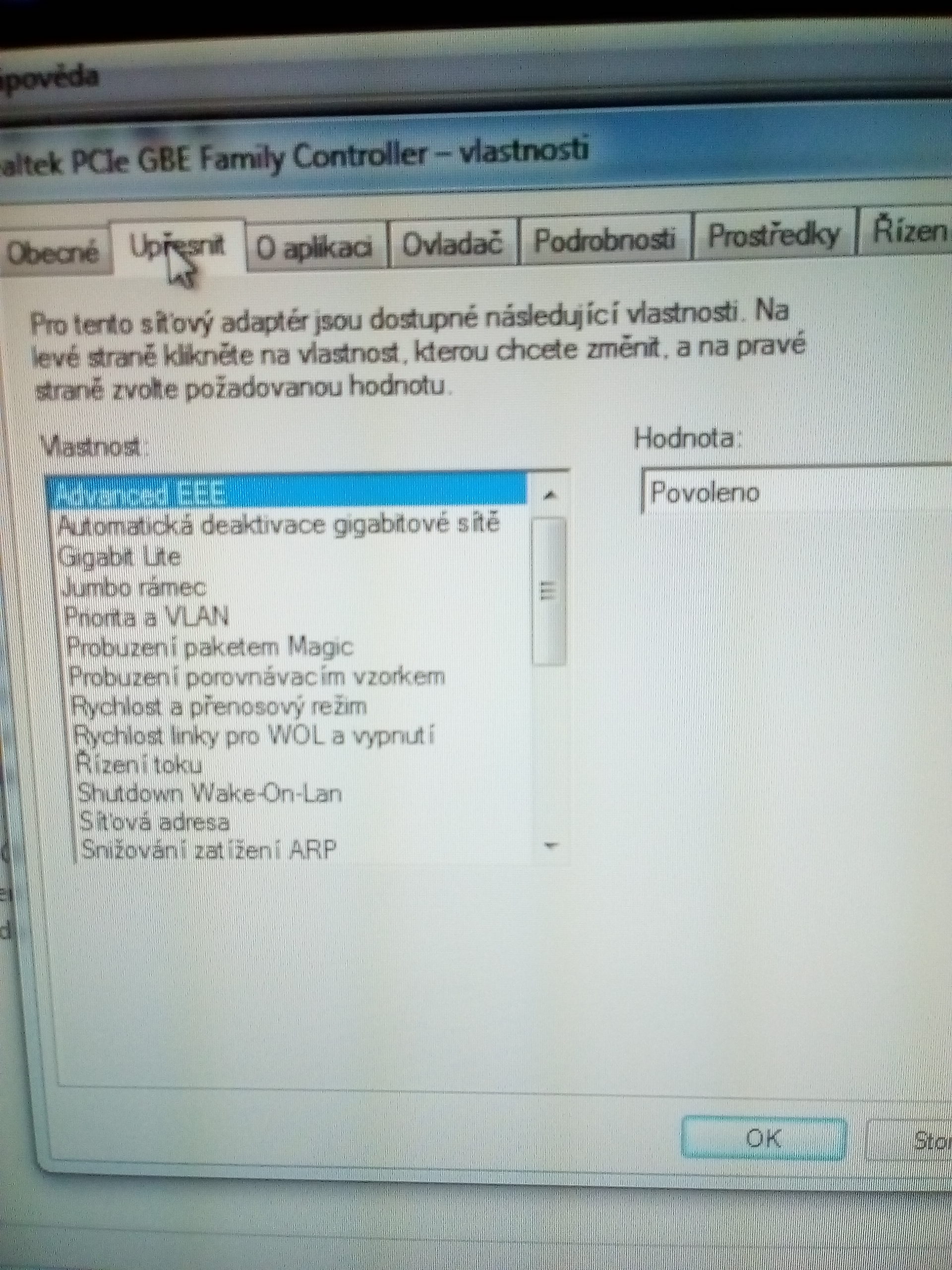 správce zařízení - síťovky - realtek - vlastnosti - advanced - speed & duplex: napevno 100mbit/full