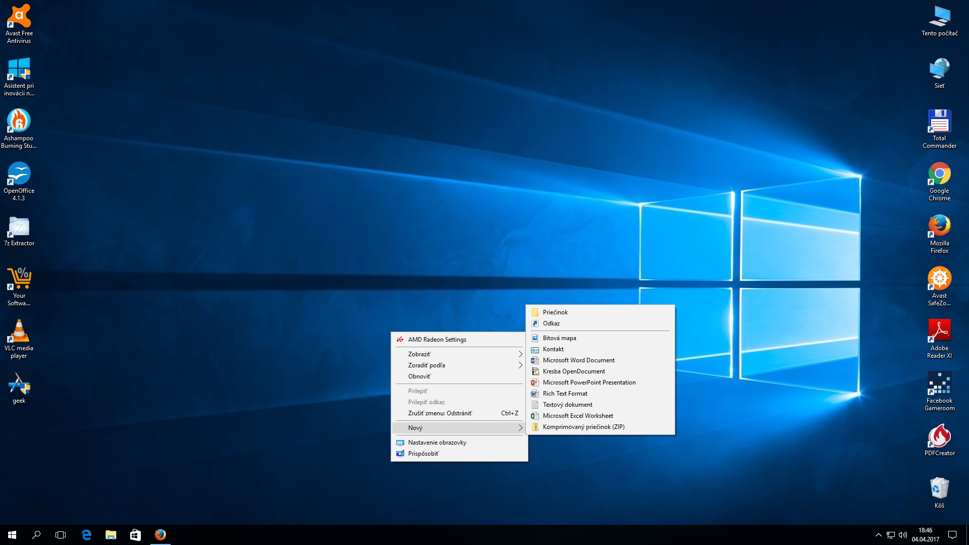 Editacia ponuky vytvarania dokumentov vo windows