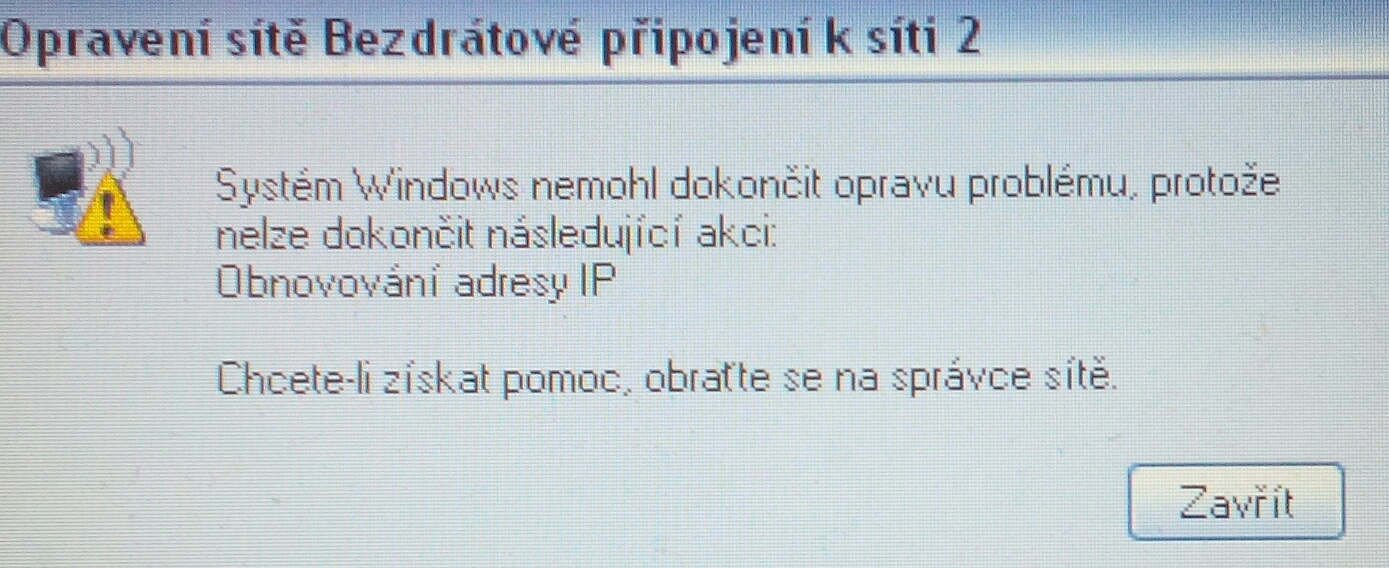 Jeste jedna vec kdyz kliknu na Opravit tak me hodi chybu pri obnovovani ip adresy. Pritom ju dostane.