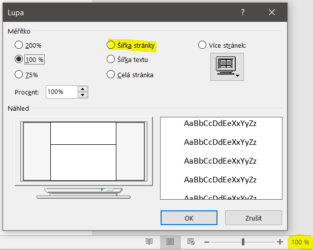 Změňte měřítko zobrazení tak, aby docházelo k automatickému přizpůsobování měřítka zobrazení podle šířky stránky dokumentu.