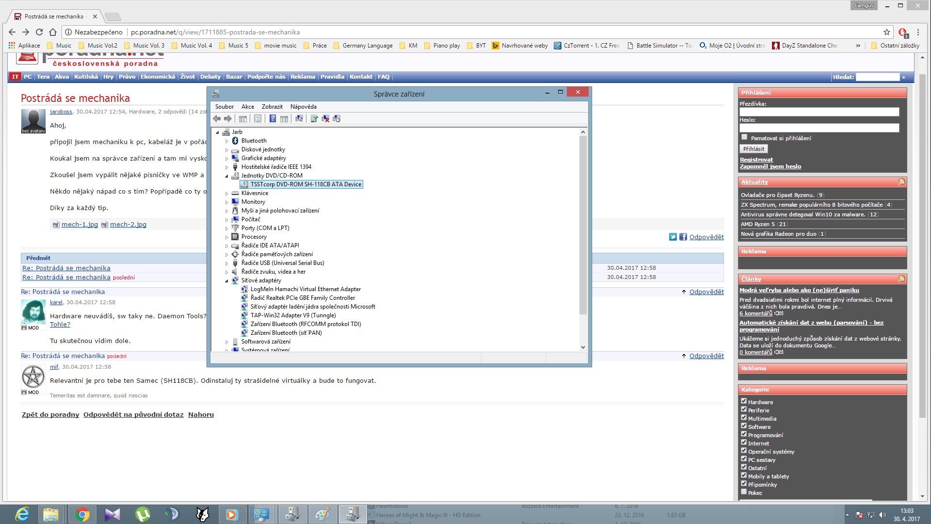 Někdo nějaký nápad co s tím? Popřípadě co ty ovladače? Nepamatuji si, že bych někdy nějaké stahoval na mechaniku.