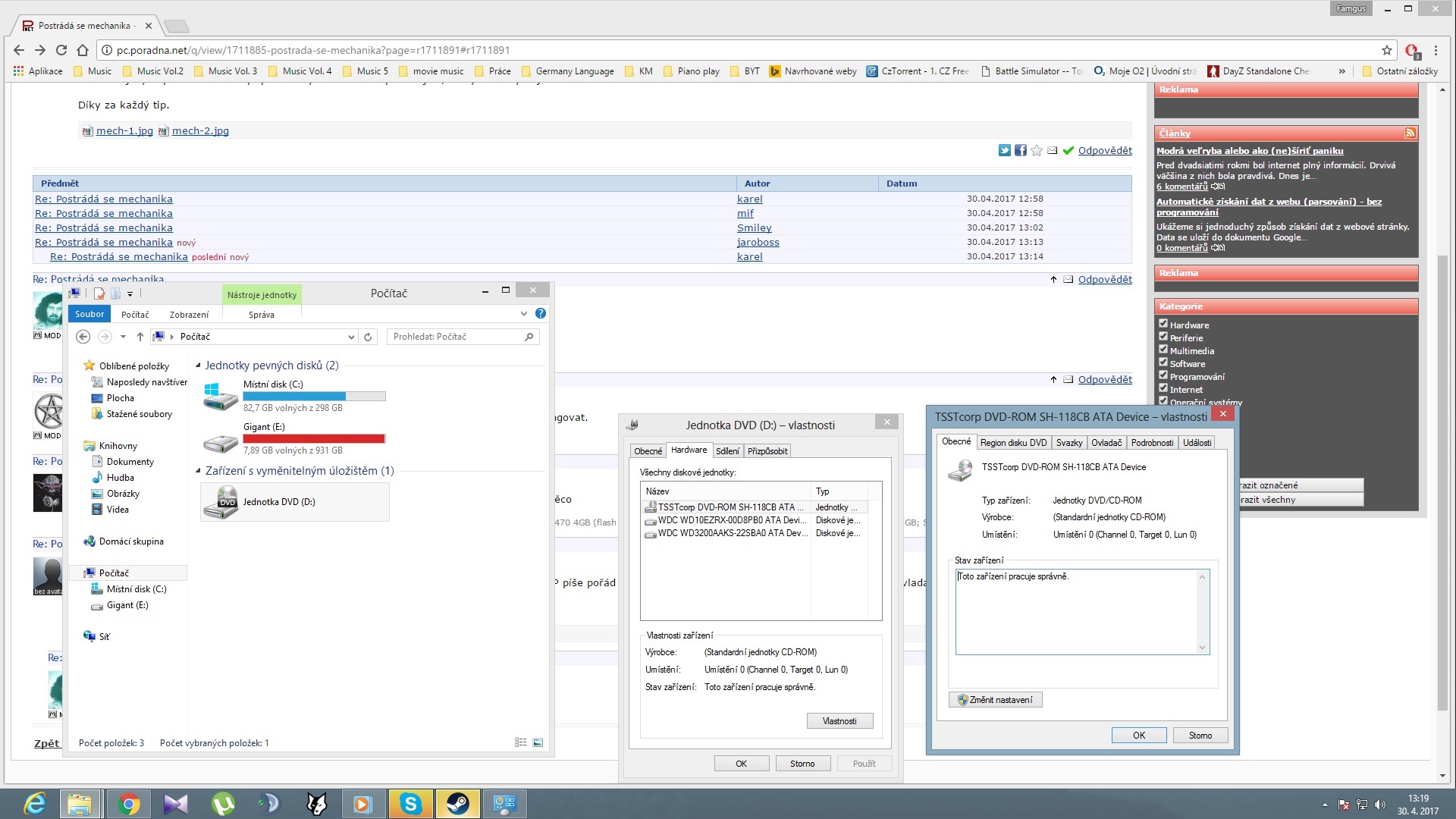edit: Jejda, nemáš to dobře. Mechanika by se měla hlásit jako DVD-RW. Ten chipset driver instalovals? Nečistils náhodou registry?