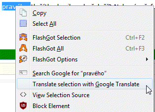 nevím jaký prohlížeč používáš, ale ani v jednom z nejhlavnějších 3 se mi nezobrazí v kontex. "transalte selection..." Nechci přeložit celou stránku, chci to číst v originálu a sem si přeložit slovo nebo větu.