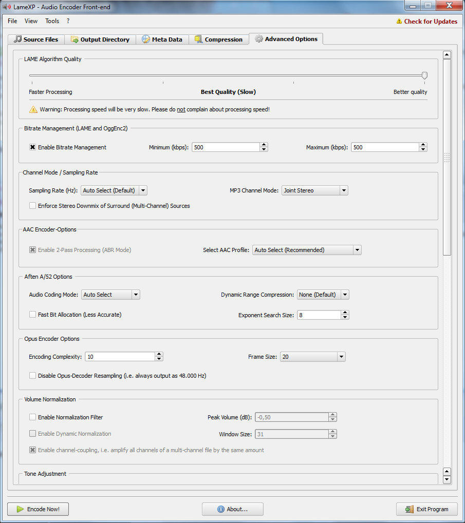 po nějakých pokusech o převody narážím na jeden malý problém. Nemůžu dosáhnout kvality 320 kbps. Pořád se to pohybuje kolem 316, 317, 318 kbps. Přikládám obrázek s mým nastavením programu LameXP. Mohu toto nastavení nějak vylepšit?