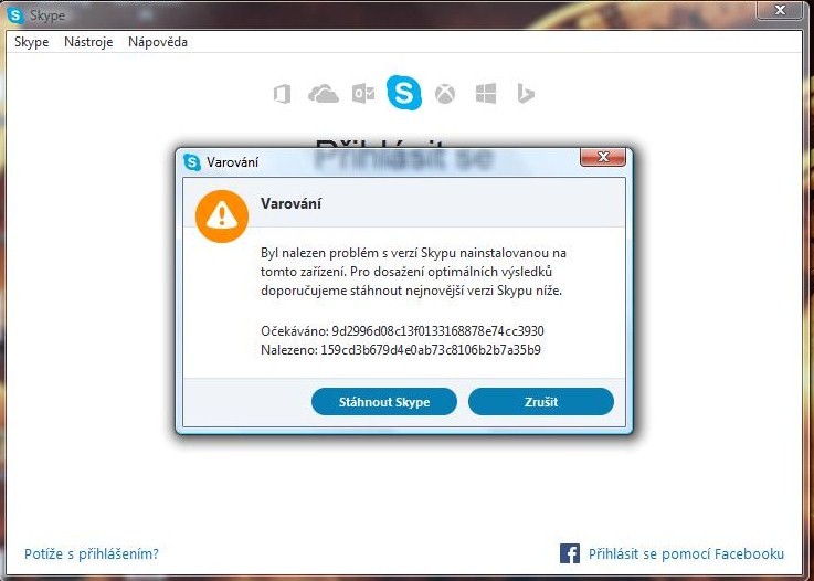 dobry den v utery sem dával do skype aktualizaci součastni verze bila skype 7.36 po aktualizaci je verze 7.35 skype se stahoval odcat Skype když sem rano zapnul pc tam skype chtělo pomně další aktualizaci a popom se ukázalo varováni a jeto divné že mně zmizli jaké funkce ze skype můžete mně pomoc to vyřešit pošlu streen děkuji .