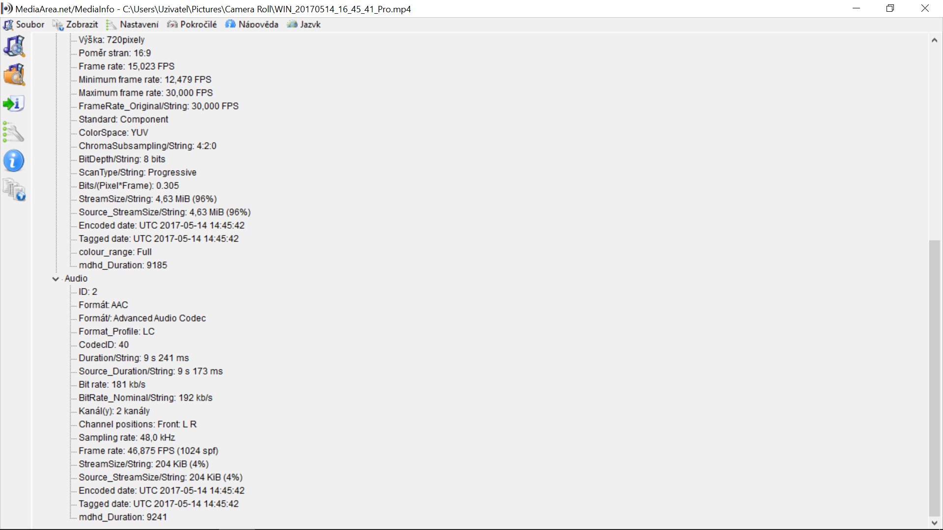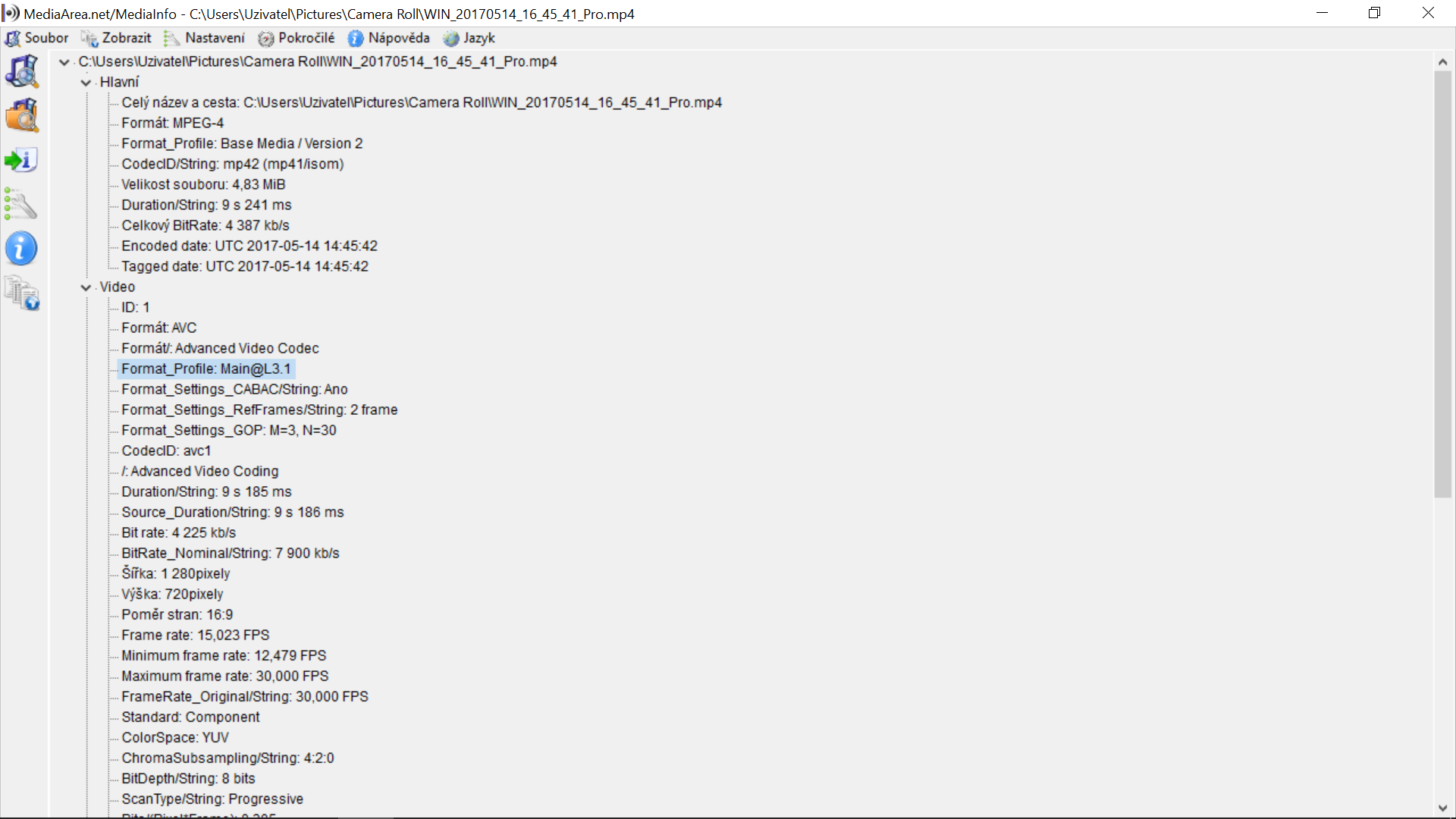 Áno kontajner je mp4, ale čo je vo vnútri sa Ti nezobrazuje... Skús si otvoriť v mediainfo nejaký i…