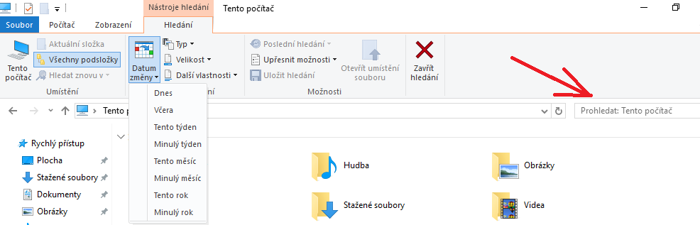 Ve W10 - průzkumník - hledání- vyskočí ti nabídka výběru.