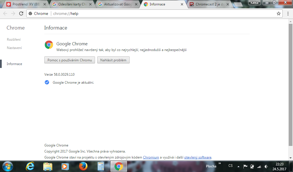 Zdielanie cez Chrome funguje na oknach v poriadku.