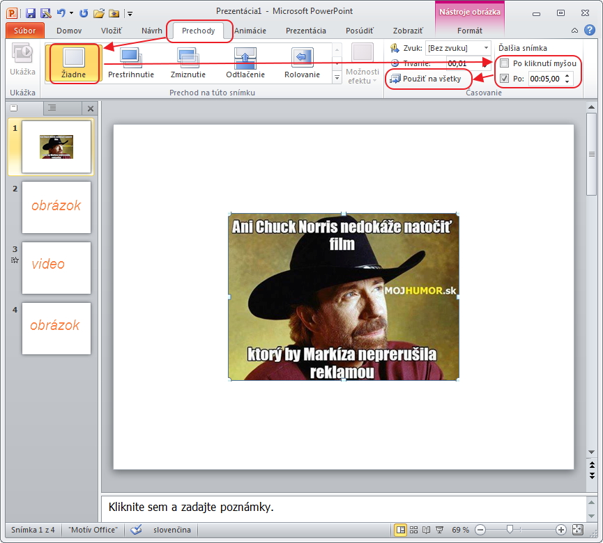 PowerPoint 2016 - Přechod snímku u vloženého videa
