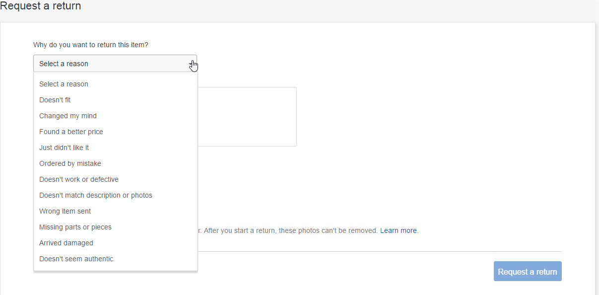 Status: You requested a return - the seller should respond soon.