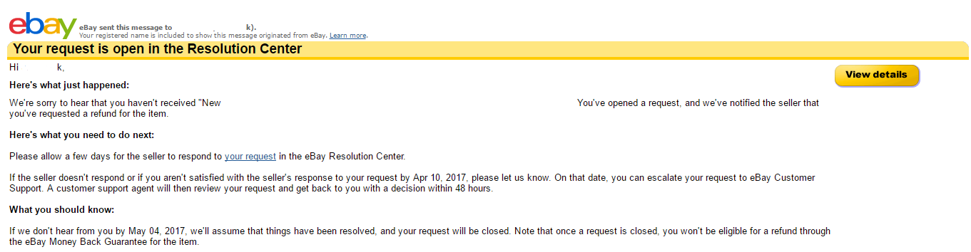 Posles request, eBay bude kontaktovat prodejce, ten by se mel ozvat do nekolika dni. Vetsinou jim jd… nový