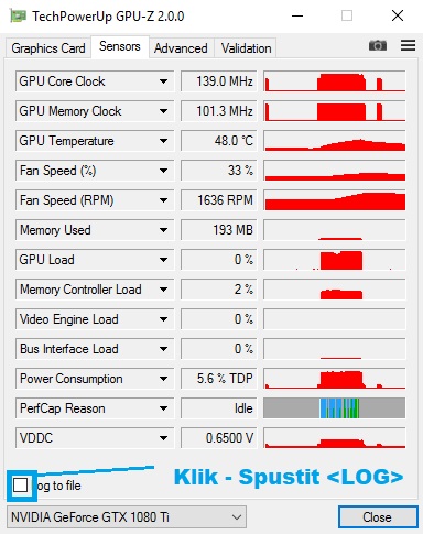 2) Spustit "GPU-Z" pak označit -> "LOG to file" (položka dole viz obrázek)