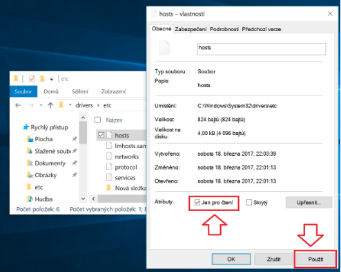 (ve kterém nezapomeňte označit take soubor "HOSTS")
