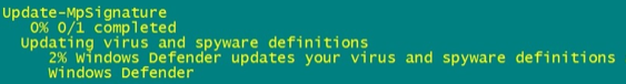 - Popřípadě na zkoušku spusť té ručně 'aktualizaci' defenderu /podpisu pomocí příkazu :