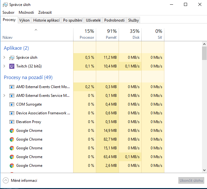 Zdravím chtěl bych se zeptat čím může být způsobeno šílené využití ram paměti? Měl jsem problém s pc tak jsem reinstaloval windows 10 (je to už dva týdny a nejsem si jistý jestli to trvá od instalace winu nebo se stalo něco teď) V pc mám 16 gb ram paměti a při zapnutém pc kdy jsem jen na ploše mám využito cca 90% - hry jsou s tím samozřejmě nehratelné a ostatní aktivity jako třeba internet problémové. Počítač jsem projel Mbamem - bez výsledku (nic nenašel)