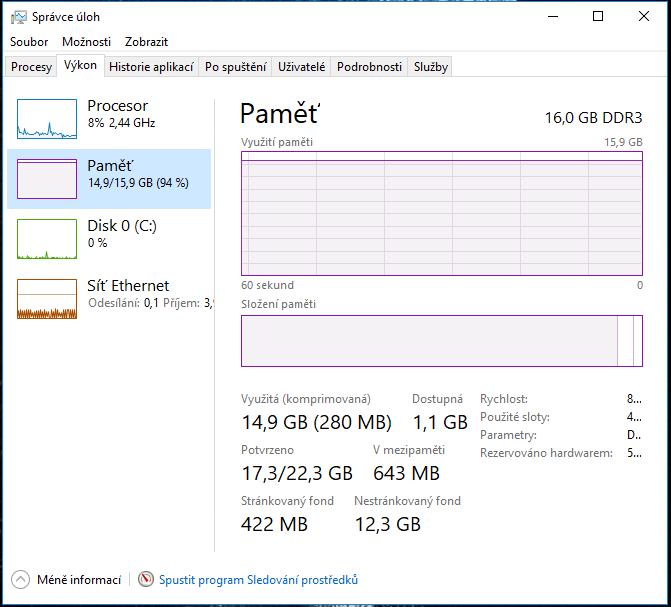 Bohužel nevím co to "něco" je. Správce úloh mi to neukáže, i když si to seřadím podle spotřeby ram tak jsem schopný napočítat využití třeba 4gb a zbylých 12 využívá bůh ví co...