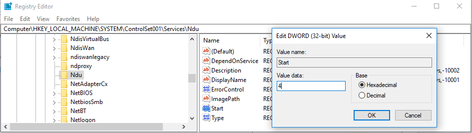 - Tak změníme hodnotu Ndu v registračního klíče k dezaktivovaní :