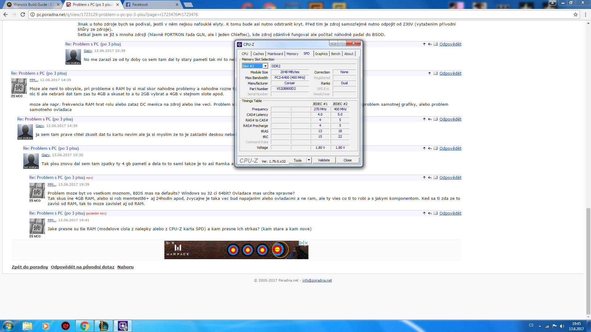 Ram: Corsair 2GB 800mhz(ted mam tadyty) (a jeste mam Corsair 4GB (2x2GB) DDR2 800 CL5)