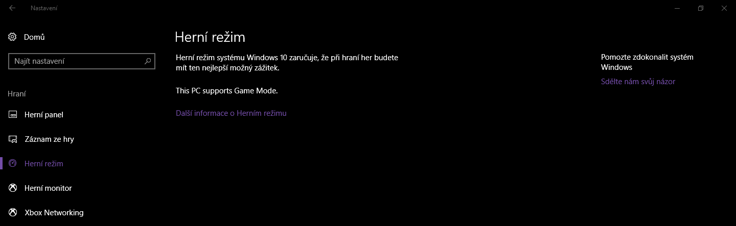 Windows 10 - Herní režim - po aktualizaci nelze nastavit