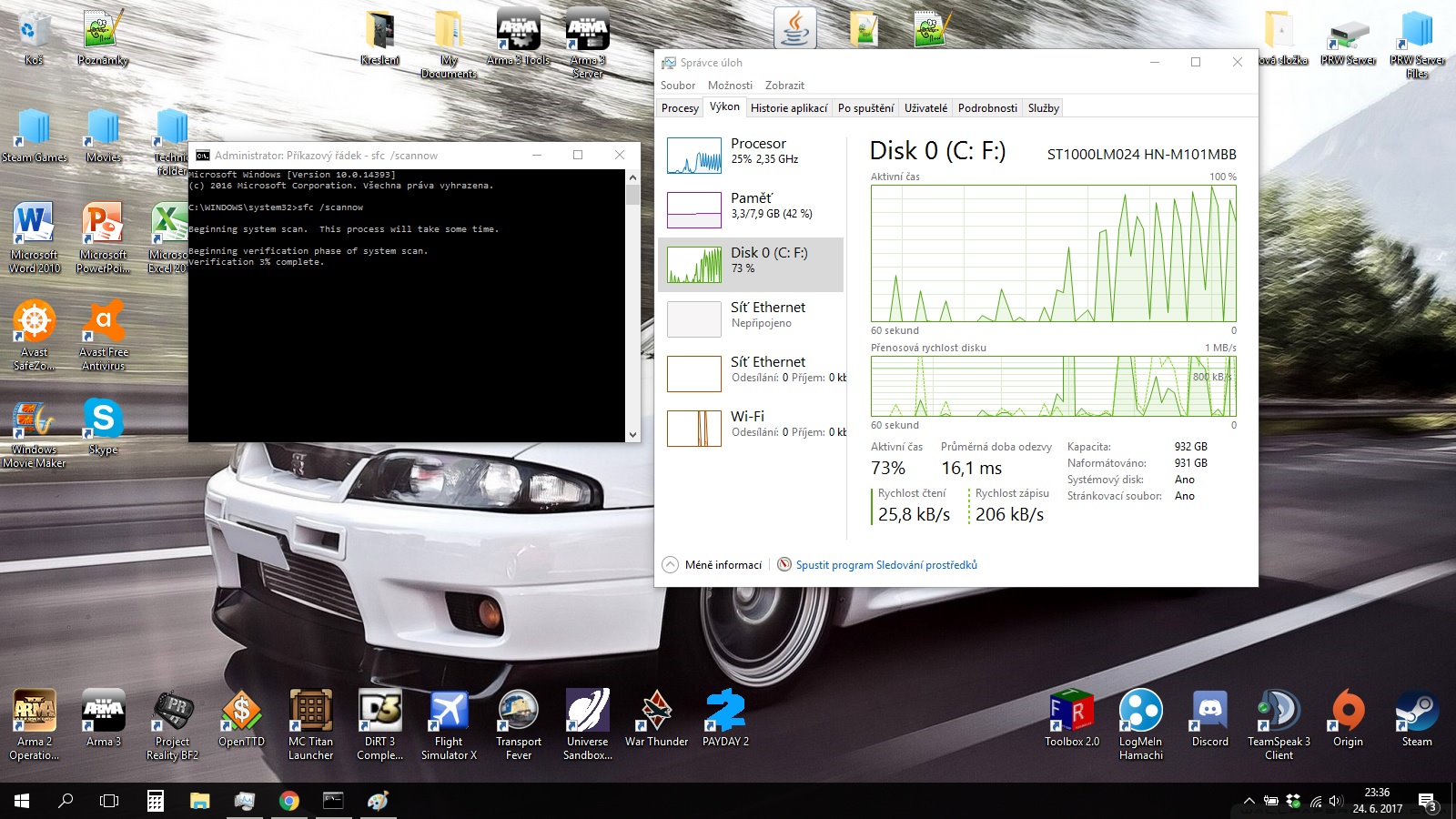 Přikládám screenshoty při spuštění Windows System File Check tool a následnému zamrznutí HDD.