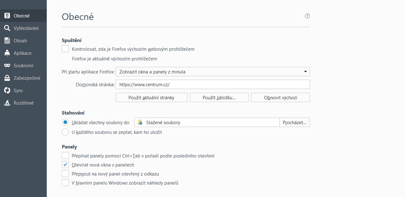 Jirka44: Mám dojem, že nikdo neberete v potaz, že se snažím o změnu ve Firefoxu posledí verze a v OS-W10 nejsem natolik znalý zda to spolu souvisí. Ty rady mě ubezpečují, že se jedná o starší verze Firefoxu či Windowsu. Pokud je možné otevřít nastavení Panelú můžeš i ostatní níže to upřesnit jak mám postupovat, zatím si s tím nevím rady.