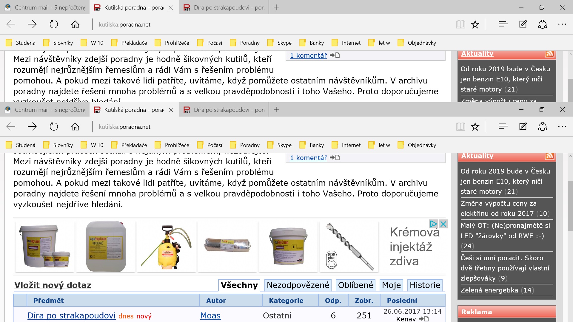 Třeba otázky na poradně. Mozillu jsem uvedl jaký prohlížeč používám čistě pro informaci.