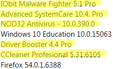 A v nejakych krekoch alebo ilegalnych sw su vzdy viry, takze pouzivat bud oficialne zdarma a zname SW (idealne opensource), alebo kupeny SW, alebo to neinstalovat (clovek v skutocnosti nepotrebuje vela SW. Vsetky tie zlto oznacene v na ziaden svoj dovod nepotrebujes.)