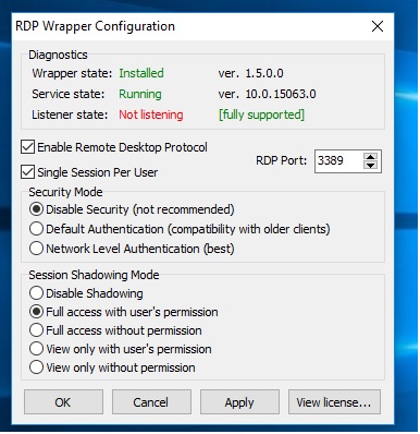 Zdravím, dlouho používám program rdpwrap pro nastavení vzdálené plochy ve win10home. Po poslední win aktualizaci již ale nefunguje (nelze se na tento pc připojit). Setkal se s tím někdo/třeba nějaký nápad jak to vyřešit? Licenci na pro nemám, aktualizaci jsem zkoušel odstranit, ale stejně to nejede. Přikládám screen configu programu, píše not listening, fully supported..