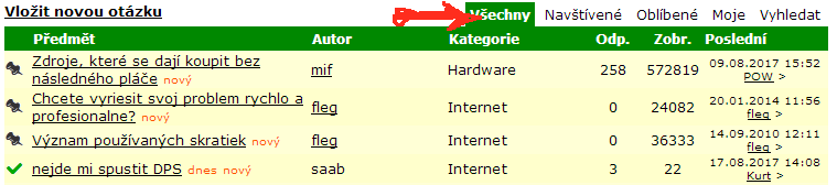 Pisem odpoved na otazku autora. Mam zapnute (zvolene) zobrazovanie "Všetky".