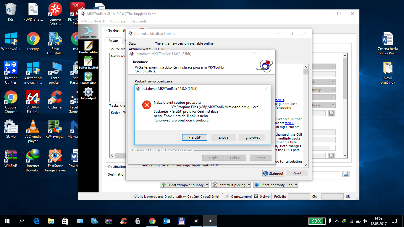 - nebo spust ten MkvToolnix jako spravce a pak udelej z nej ten upgrade