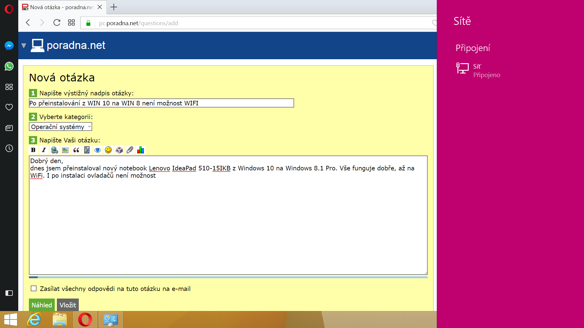 Po přeinstalování z WIN 10 na WIN 8.1 není možnost WIFI