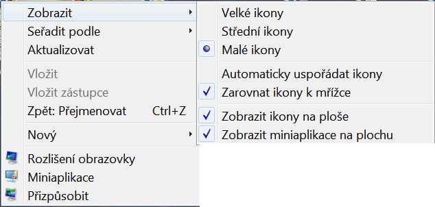 Zkoušel jsi klik pravým myšítkem na Plochu? Viz. obrázek. Pokud se to odtud nepodaří vrátit do přijatelného stavu, tak ti nezbude, než si ikonky pěkně poroztahovat na kýžená umístění ručně (tažením myší).
