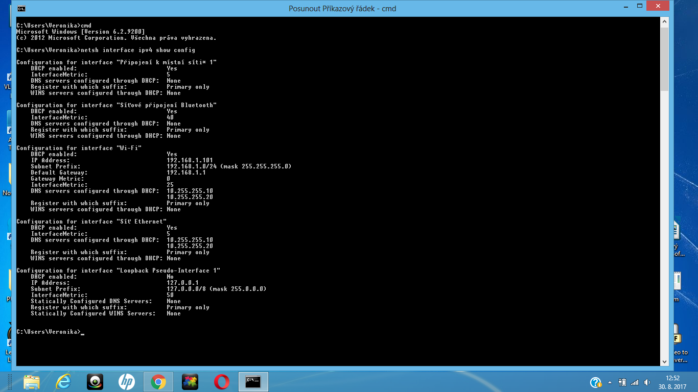 * Tento prikaz nam zjednodusene receno znazorni jak mate nastaveno vase pripojeni a jeho detaily i s nastavenim [DNS].