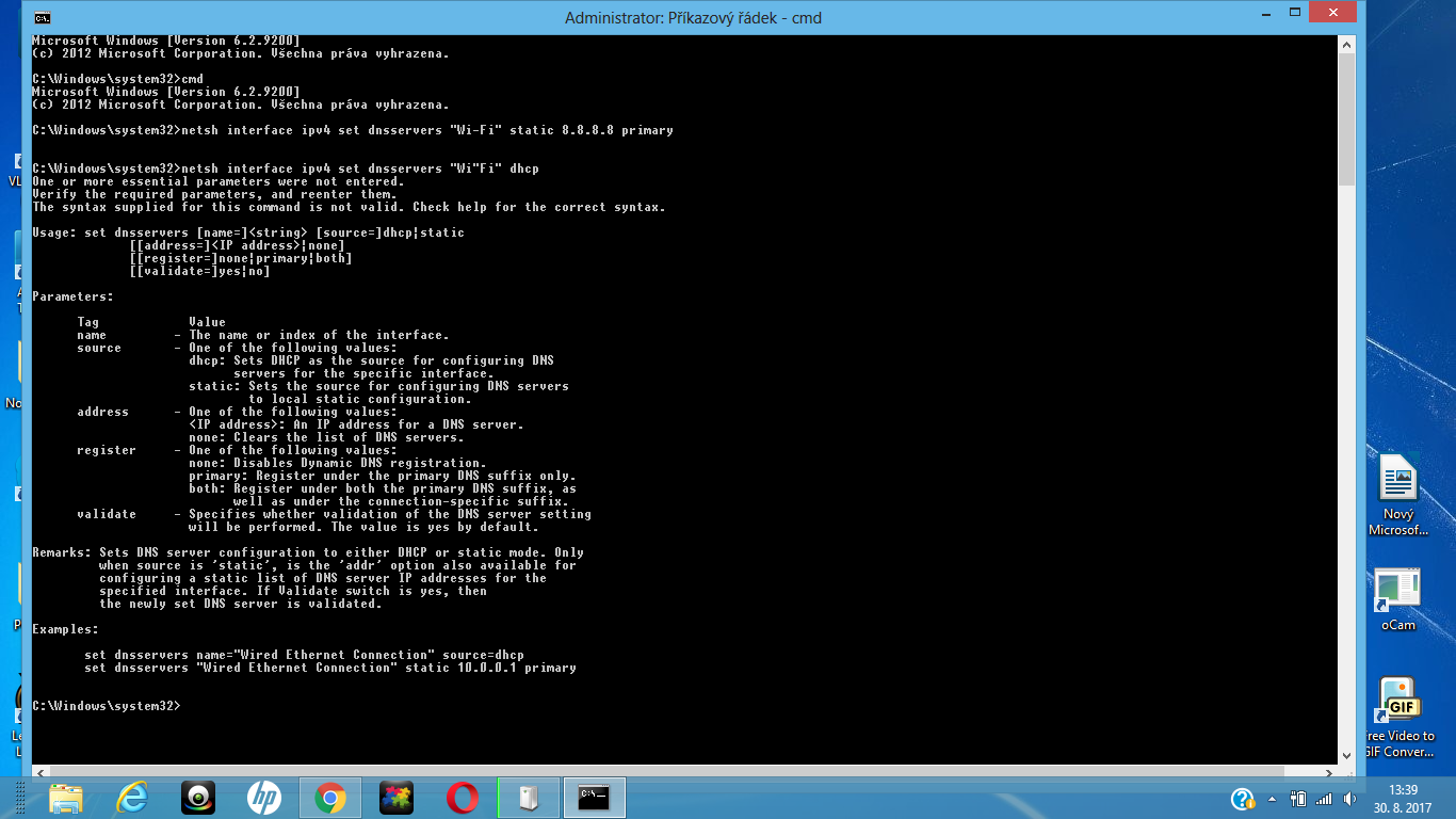 • Ma to byt "Wi-Fi" né "Wi"Fi" netsh interface ipv4 set dnsservers "Wi-Fi" dhcp TiP ~ Pro okopirov…
