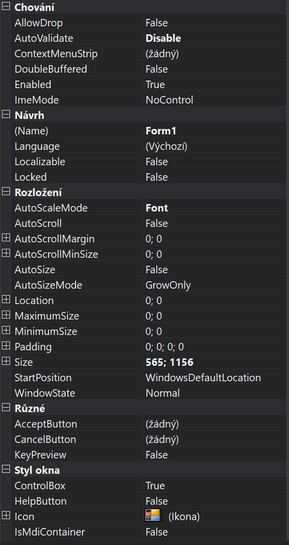 Visual Studio - po spuštění se vygeneruje špatný rozměr aplikace