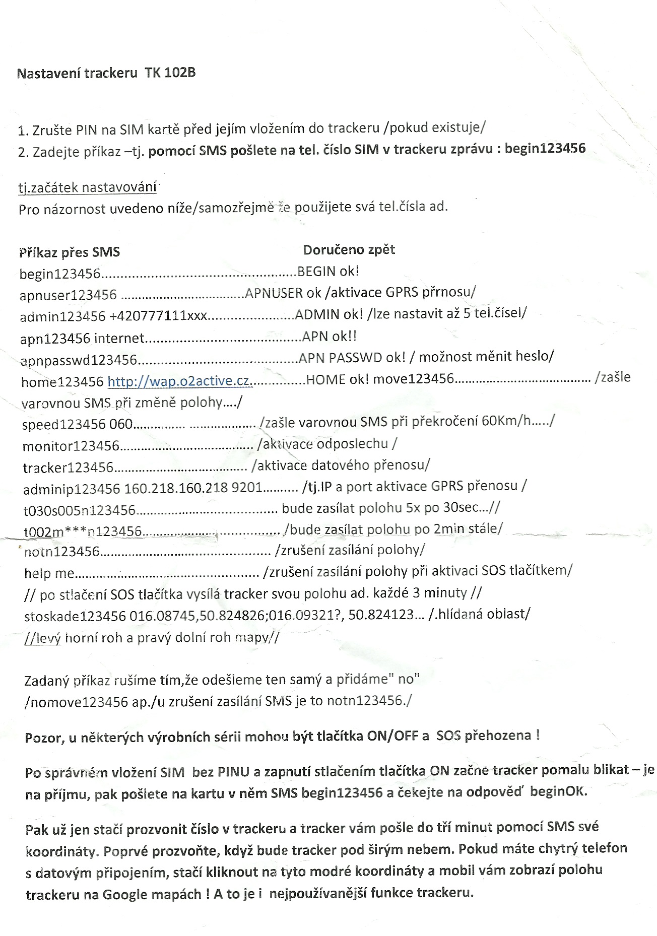 Ještě se vracím k tomuto lokátoru nevím kde se to umě vzalo návod vis příloha je tam popsaná funkce MOVE ale ten lokátor odpověděl OK ale nic potom po změny polohy nedošla žádná SMS kde dělám chybu? co mě funguje je jen check123456 to mne pošle GSM signál v procentech,GPS,GPRS:OFF,BATTERY:procenta díky