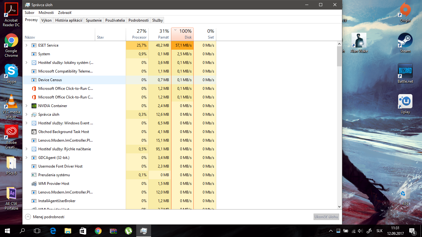Zdravim. Mam taky problem vzdy aj ked PC nanovo zapnem vzdy mi disk ide na 100%.