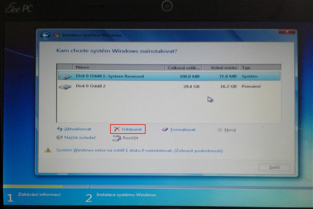 chtěla bych požádat o radu. Přeinstalovávám počítač Eee PC asus x101, operační systém windows 7 starter, instaluji z usb. Systém se načte, ale u disku mám problém nejde zformátovat, hází mi to chyby, když dám nainstalovat je to stejné, viz. příloha. Prosím, je možné s tím něco dělat? Děkuji moc za všechny rady, hezký den