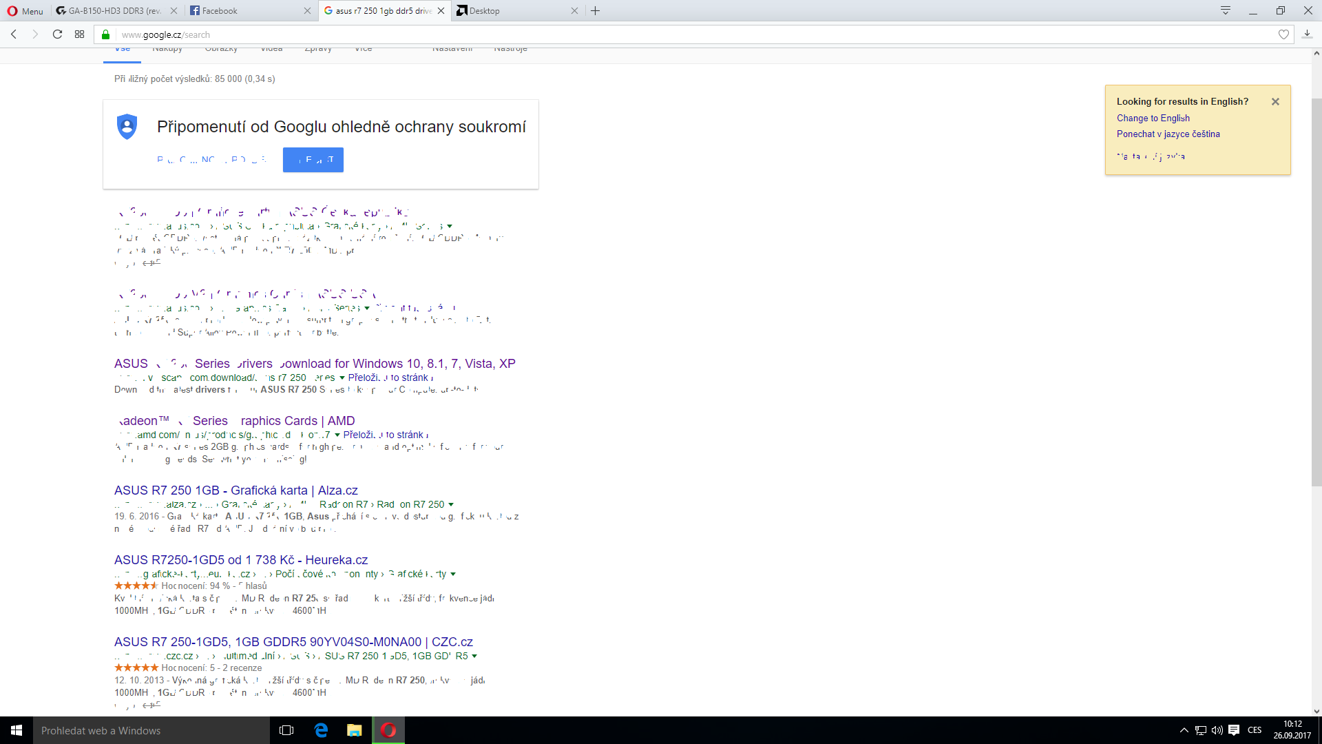 Dobry den, dnes jsem reinstaloval windows 10, vse probihalo hladce i instalace vsech ovladacu. Po instalaci ovladace graficke karty to zacalo delat viz. screen. Co s tim ? Jinak intel i5 6500, asus r7 250. Obrazek nejde vlozit... Proste to nezobrazuje cela pismena, vzdy kousky chybi a dela to jen u internetu ve windows to je ok. Pokud text oznacim misi tak se opet ukaze cely. *