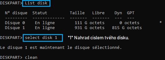 Me fuguje: - Spustit DiskPart : WIN+R -> diskpart.exe Nasledovne v diskpart|konsoli zadát : [79869-d…