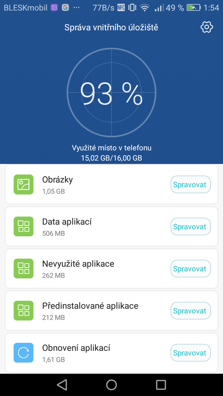Taky počítej s tím, že několik GB si bere sám Android. Takže kdyř máš úlložiště 16GB, tak k dispozici pro soubory klidně můžeš mít jen polovinu.