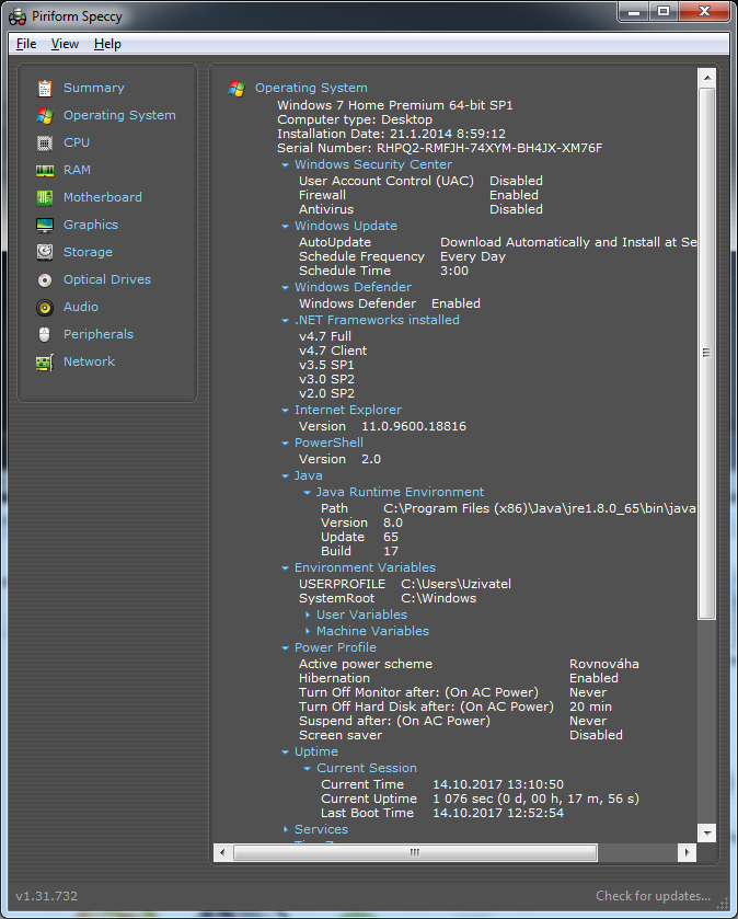Info o zákl. desce a OS.