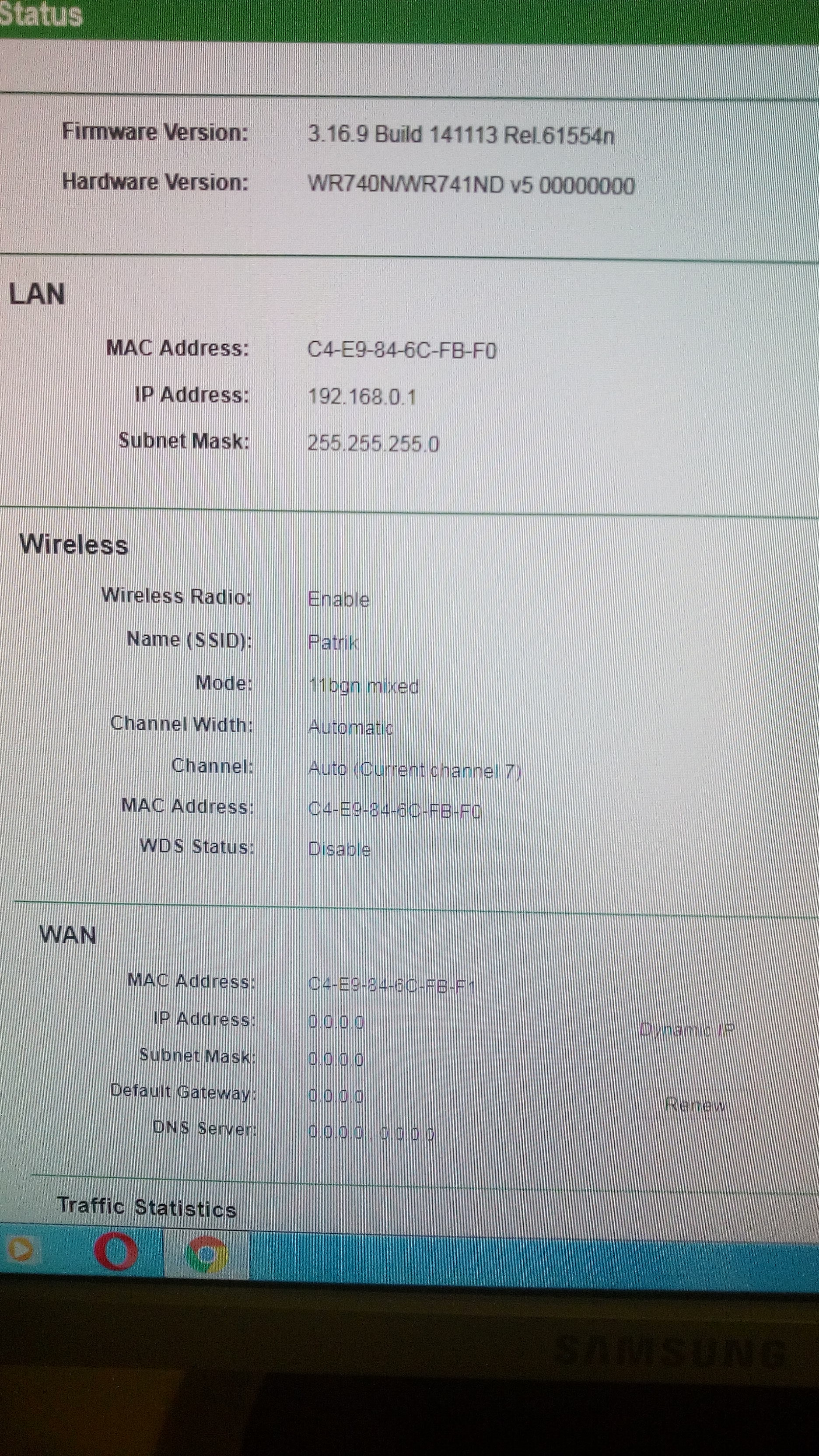 podle fotky router nedostal ip idresu - viz prázdné adresy wan. tento router nechytá venkovní wifi o…